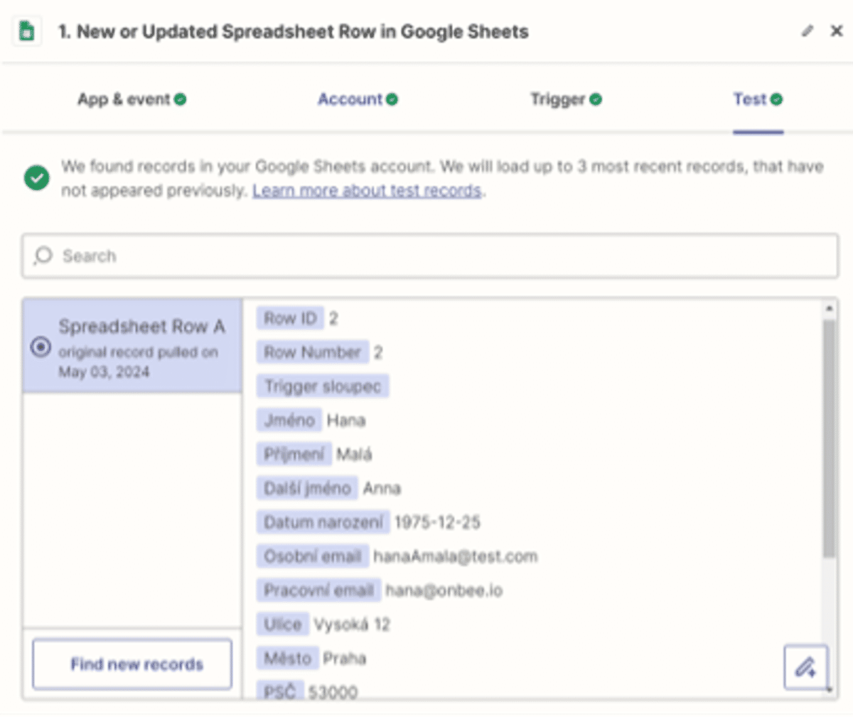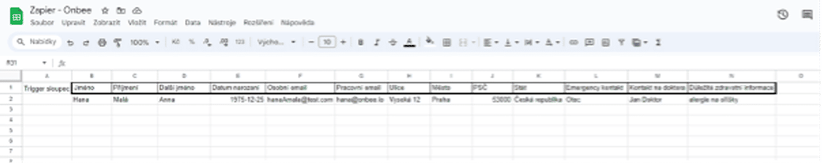 Příklad konkrétního použití: Automatické vytváření zaměstnanců v Onbee.app z Google Sheets